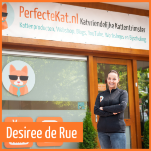 Desiree is oprichter van het KattentrimKeurmerk. Zij is fulltime kattentrimster bij PerfecteKat.nl. Zij heeft een salon in Almere-Haven. Haar missie is om het kat- en vachtbesparend trimmen op de kaart te zetten in Nederland en België. Kattentrimsters bij elkaar brengen en van elkaar leren vindt zij heel belangrijk. Naast haar trimwerkzaamheden heeft zij een YouTube kanaal, webshop en schrijft zij blogs over kattenwelzijn, vachtverzorging en andere kat gerelateerde onderwerpen.